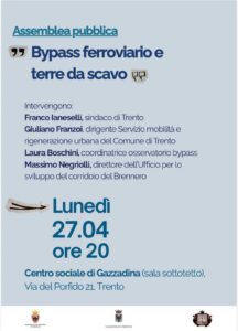 Bypass ferroviario di TN e terre da scavo, serata informativa a Gazzadina il 27 aprile